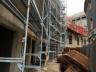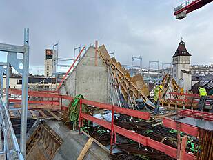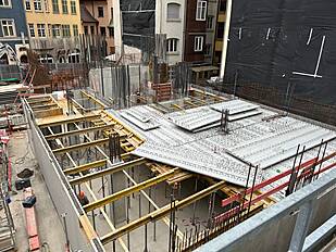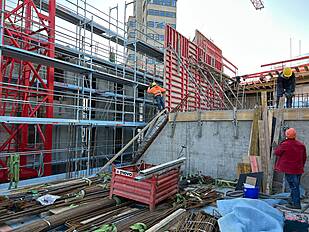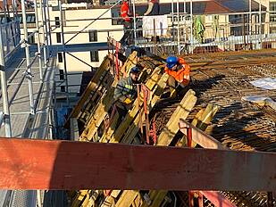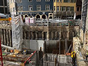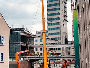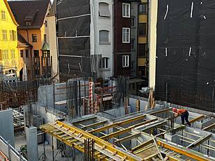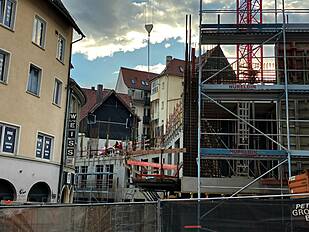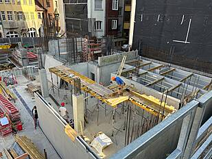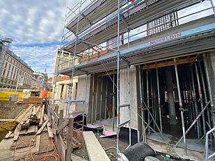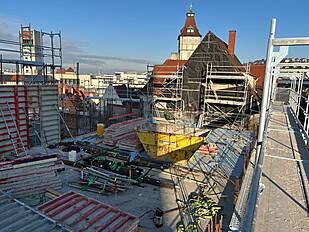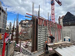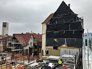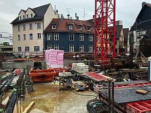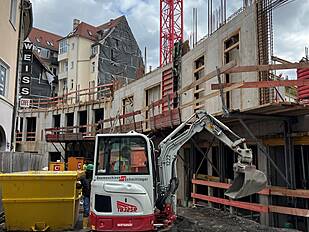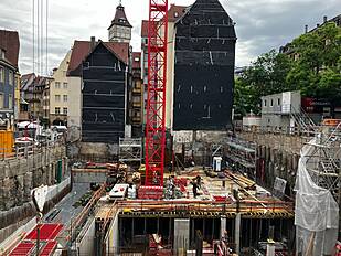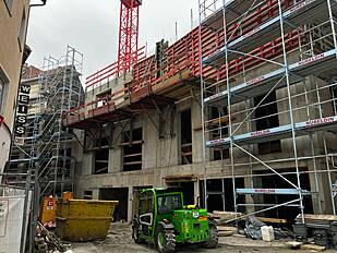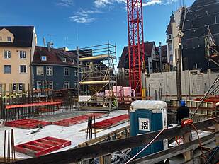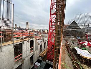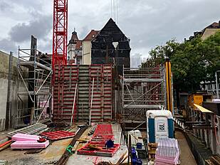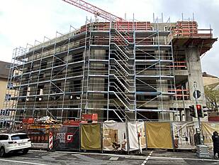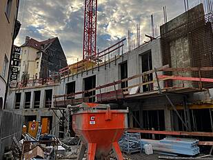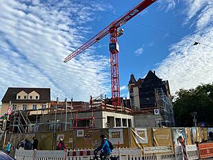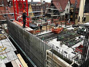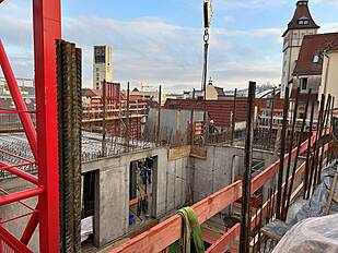 In den vergangenen Wochen und Monaten hat sich einiges getan auf der Baustelle unseres Projekts Vier Giebel. Hier auf dieser Seite können Sie den Baufortschritt begleiten und sehen, wie aus der einstigen Baugrube nach und nach ein architektonisch anspruchsvolles Gebäude erwächst.